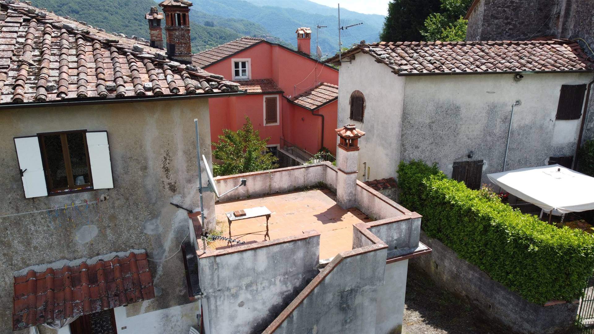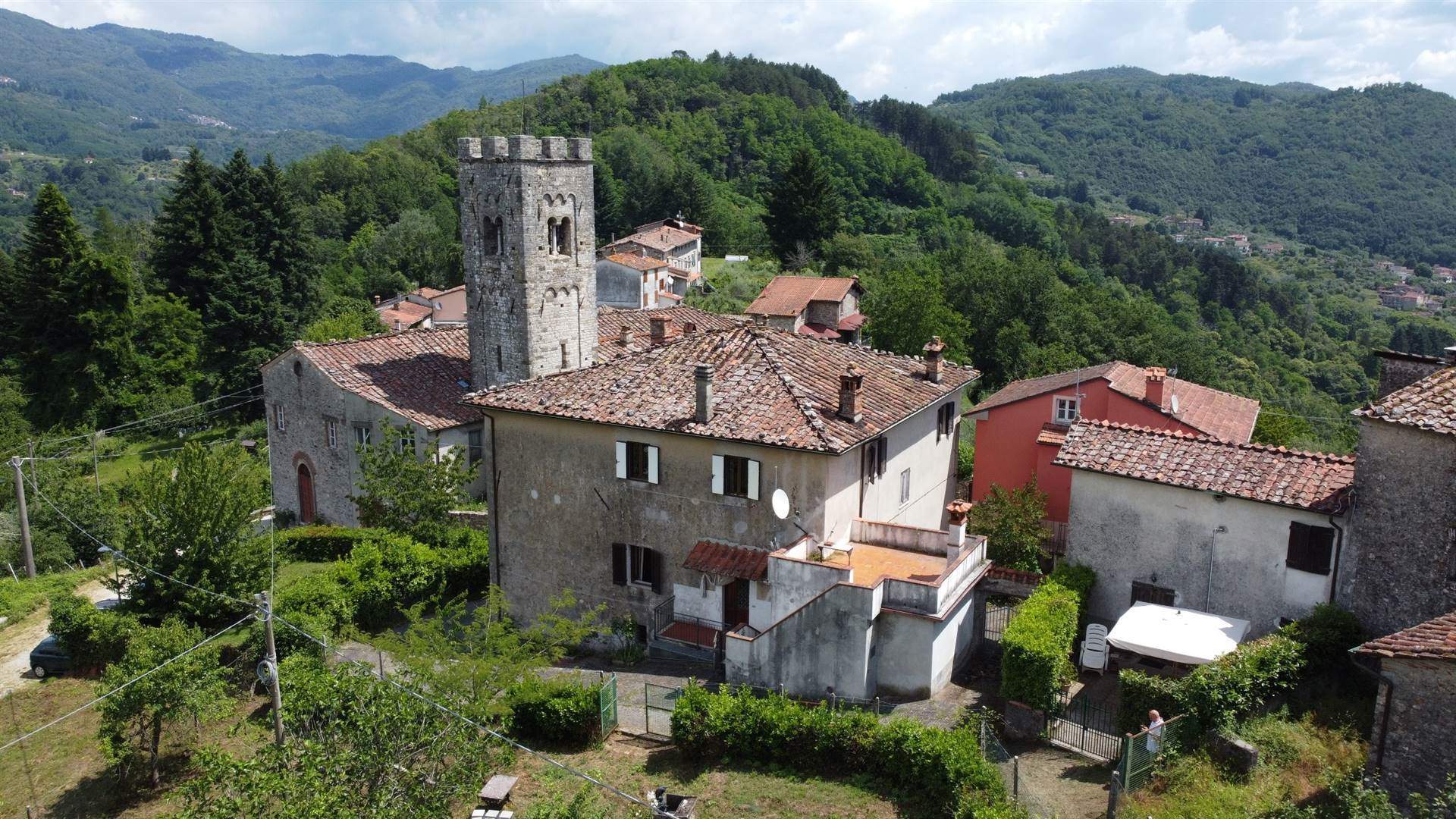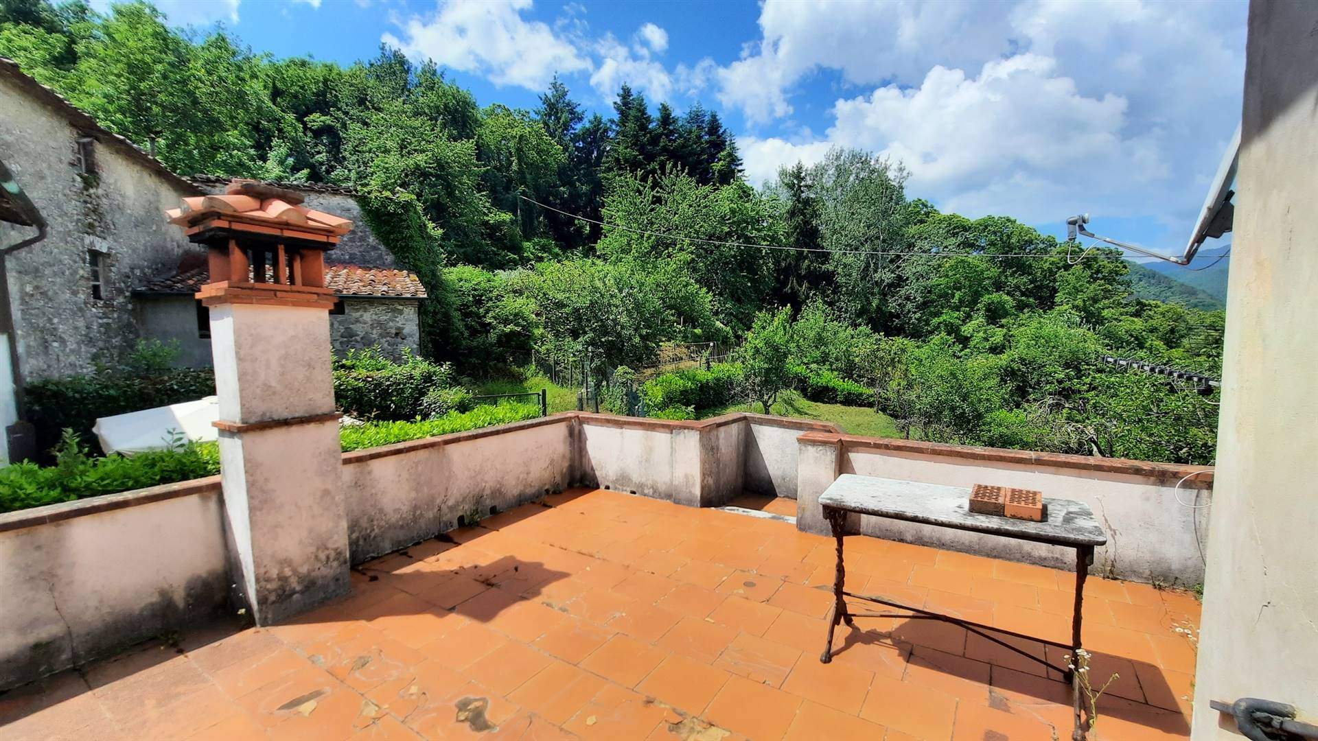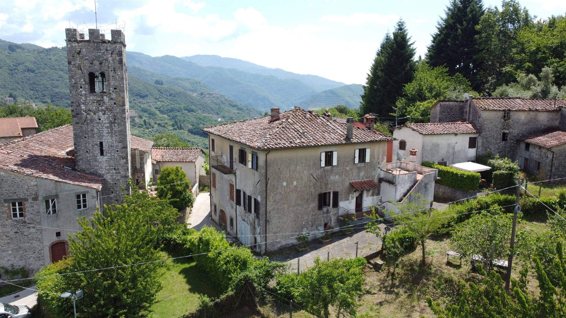 TUSCANY - PESCAGLIA (Lucca) – [V0294] – In a splendid and quite place, in the heart of the small medieval village of Fondagno, we offer an attractive apartment of approx 100 sqm, with splendid views and big garden. This charming property located in the center of the town includes a nice terrace, a small old build and a plot of wood in the sale.It's possible parking the car in front of the house, more there is a public parking space at about 20m. The apartment is on level plus a semi-interred level used garage/cellar. The house is composed of: GROUND FLOOR -Entrance; -Living area with fireplace; -kitchen/dining room; - 2 bedrooms; - Bathroom; SEMI-INTERRED LEVEL - Cellar / cellar; - Garage; The property is located in Fondagno (315m above sea level) near the lovely village of Celle di Puccini a place known for the house-museum of the Puccini family, where the musician-composer of La Boheme spent his childhood, and can be reached along the paved road from Diecimo for about 7 km ( 10 min drive). The sunny and open position offers from every window or corner of the house a breathtaking view from the particular views of the streets of the village to the splendid views of the surrounding hills. The sale included land of 700 sqm and 1080 sqm of wood. The position of the house makes it the perfect solution as a holiday home or a family home. Near the village there are a typical restaurants and the about 7 km away there are all the other main services, including the railway station. Lucca is only 30 minutes (25 Km) away by car and offers restaurants, museums and other interesting attractions such as taking a bike ride on the Roman walls that surround the city. Pisa airport is 65 km (1 hour) and the beaches of the Versilia coast (Viareggio, Forte dei Marmi) are 60 km (1 hour). All you need to do now is contact us via the contact form at the top of the page if you wish to receive more information. Better yet, call us to arrange a viewing at a time that's right for you. There is the possibility to see the interiors in detail on the video