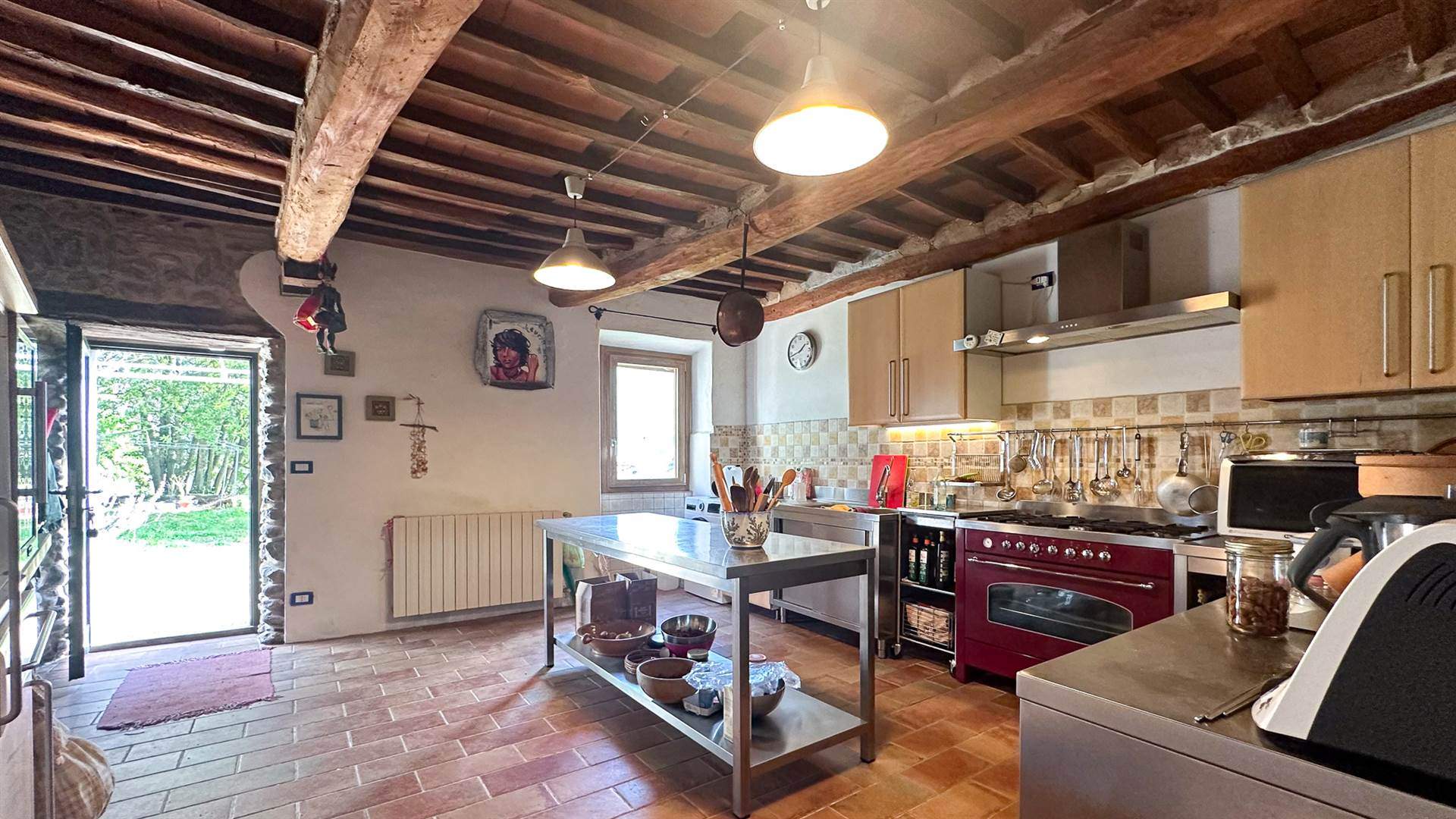 BARGA - [Rif. V0306] – Beautiful property located in Filecchio village, few minutes' drive from Barga. The property consists of a main house plus an out little building and surrounding land of approx. 7300ca. The buildings have been completely renovated in the 2000s, maintaining the original architectural structures. The main house of approx. 240 sqm is immediately habitable and arranged on three levels plus a basement and consists of: GROUND FLOOR: - Entrance-kitchen open space; - Dining room; - Living room; - Terrace; FIRST FLOOR: - Double bedroom; - Disengagement; - Bathroom; - Single Bedroom; - Study; SEMI-INTERRED FLOOR - Laundry; - Utility room; - Cellar; - Closet; - Bathroom; - Shower; SEMI-INTERRED FLOOR 2 - Cellar room; The property included a lovely boasts out little building of approx 70 sqm completely renovated and arranged on 2 levels. Ground floor composed of entrance-kitchenette-dining room, double bedroom, bathroom. First floor composed of: entrance-kitchen-dining area, bathroom and double bedroom. The property is located in a hilly position, has excellent exposure and fantastic views of the surrounding mountains. It is located in a very quiet area, but all the main public services are just a 10-minute drive away. The property is surrounded by approx 5000 sqm of flat land with wood oven plus another 2300 sqm of woodland. Possibility of large swimming pool. This is a property that is well suited to carrying out hospitality activities (agritourism - B&B), but also as a main residence or for holiday. Ideal for lovers of tranquility and nature. The sale includes most of the furnishings. Immediately habitable property and in excellent maintenance conditions.