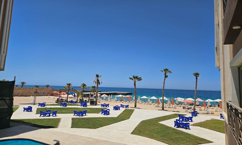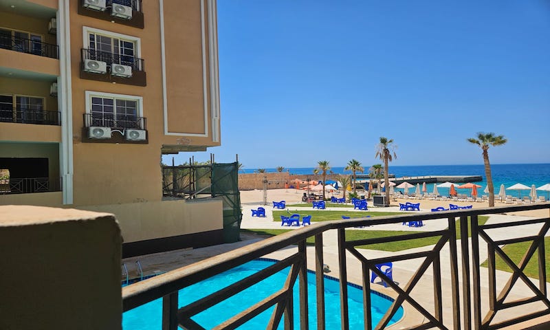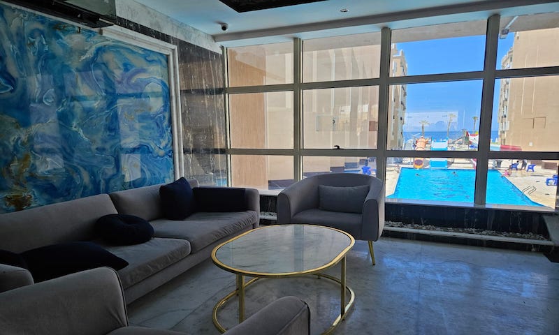 Ready to move in 2 bedroom apartment with seaviews from 2 bedrooms and lounge area. Has a large family sized spacious balcony/terrace. 1 bathroom fitted with shower, toilet and sink. Has white and grey marble effect tiles as well as neutral white walls. Furnishing service available additional cost involved. (We provide 3D project management) Juliana Beach Resort is in Al Ahyaa area it is a sea front location and the views are totally breath taking. (See Video) Prime Location: Conveniently Located: Nestled between Mubarak. 7 and Al Ahyaa district, you're perfectly situated for both city exploration and tranquil beach retreats. Hurghada International Airport is just a swift 15-minute drive away. Julianna Beach Resort Facilities: Beachfront Bliss: Indulge in a private beach experience within the comfort of your residence. Pool and More: Dive into the swimming pool, unwind at the cafe & restaurant by the pool, and let the kids splash in their designated pool. Secure Living: Benefit from 24-hour security in this gated resort, ensuring peace of mind for you and your loved ones. Convenience at Your Doorstep: Access daily needs with on-site shops and explore nearby markets easily. Private Parking: Your convenience matters; enjoy hassle-free parking within the resort. Amenities for All Ages: From a children's Aqua Park to a Spa and Gym, Julianna offers a diverse range of facilities to cater to every lifestyle.