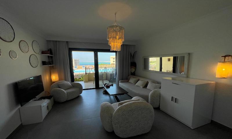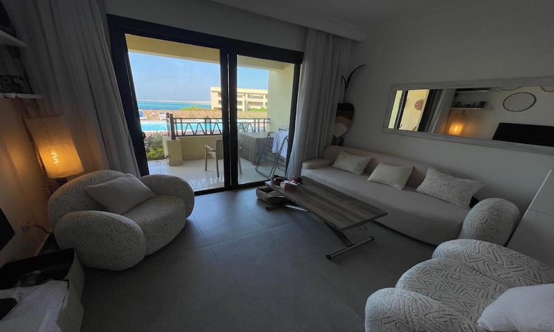 *Discover Your Dream Apartment in Hurghada!* Welcome to your new oasis at The View on Sheraton Road, where luxury meets breathtaking beauty. This stunning apartment is more than just a place to live; it's a lifestyle choice that offers a unique blend of comfort, convenience, and stunning surroundings. *Property Highlights:* • *Location, Location, Location:* Nestled in the heart of Hurghada, this apartment boasts an unbeatable position with direct access to a private beach, ensuring your days are filled with sun, sand, and sea. • *Stunning Views:* Enjoy pool and sea views from your very own terrace. Experience relaxing evenings with panoramic vistas that will take your breath away. • *Modern Amenities:* This 65 m² apartment features a cozy double bedroom with ample wardrobes and a wall-to-ceiling storage cupboard in hallway, providing you with all the space you need. The tastefully designed kitchenette is equipped with a washing machine and hotplate, featuring sleek white units complemented by stunning marble worktops and splashbacks. • *Inviting Living Space:* The lounge area is designed for relaxation and entertainment, featuring a comfortable coffee table, armchairs, and a large modern TV, perfect for cozy movie nights. • *Ultimate Comfort:* Equipped with air conditioning in both rooms, this apartment is designed for your comfort year-round. • *Resort-style Living:* Step outside to enjoy resort-level amenities including a private beach, magnificent pool and access to a state-of-the-art gym and spa, enhancing your everyday living experience. *Invest in Your Future:* This gem is available for just *$162,000 or equivalent*. Whether you are looking for a vacation home, a rental investment, or a permanent residence, this property ticks all the boxes. Don't miss your chance to own this exceptional apartment in one of Hurghada’s most coveted locations. Contact us today to schedule a viewing! Or purchase your new home online Your dream lifestyle awaits!