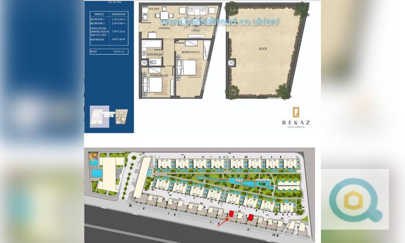 Excellent below market value option of 2 bedroom condo apartment. Interior space of 89 msq with additional roof terrace of 89 msq total area 178 msq. apartment comprises of 2 large bedrooms, 1 bathroom and a really spacious lounge area, with open plan kitchennette area. An internal staircase leads to private huge roof terrace which has lovely panoramic sea views.Roof terrace, can be utilised as per owners desire. Including installation of hot tub, canopy, seating/relaxation areas the possibilities are endless. Experience the best of Living at Lazuli! Lazuli is more than just a residence; it’s a private community spread across 40,000 sqm of lush land, exemplifying the joy of relaxed living surrounded by breathtaking scenery. Here, you’re just a few steps away from stunning white sandy beaches and vibrant landscapes, all while enjoying warm weather year-round Lazuli in Hurghada offers you the chance to invest in a prestigious residential development in one of Egypt’s most sought-after destinations. *Don't miss out on this incredible opportunity* to own a piece of paradise where stunning views of the Red Sea await you from your penthouse. Your Dream Life Awaits! While there is no private beach directly available, the open sea is just a short 15-minute walk away, allowing you to enjoy the beautiful Egyptian coastline easily. *Seize this opportunity today and step into a life of luxury and ease at Lazuli!* For more information or to schedule a visit, please contact us now on 00447429368398 Down Payment £23,336 Installments £ 46,664 Maintenance one time only 10% of property price. Jacuzzi for roof terrace available at extra cost. Experience the difference with Padsabroad. Trading in the United Kingdom and Europe almost a decade, along with 20 years of expertise in Hurghada, Egypt, we are your trusted property experts. Our extensive experience and proven track record ensure that you receive the best guidance in your property journey. We do not charge our clients finders fees or commission.