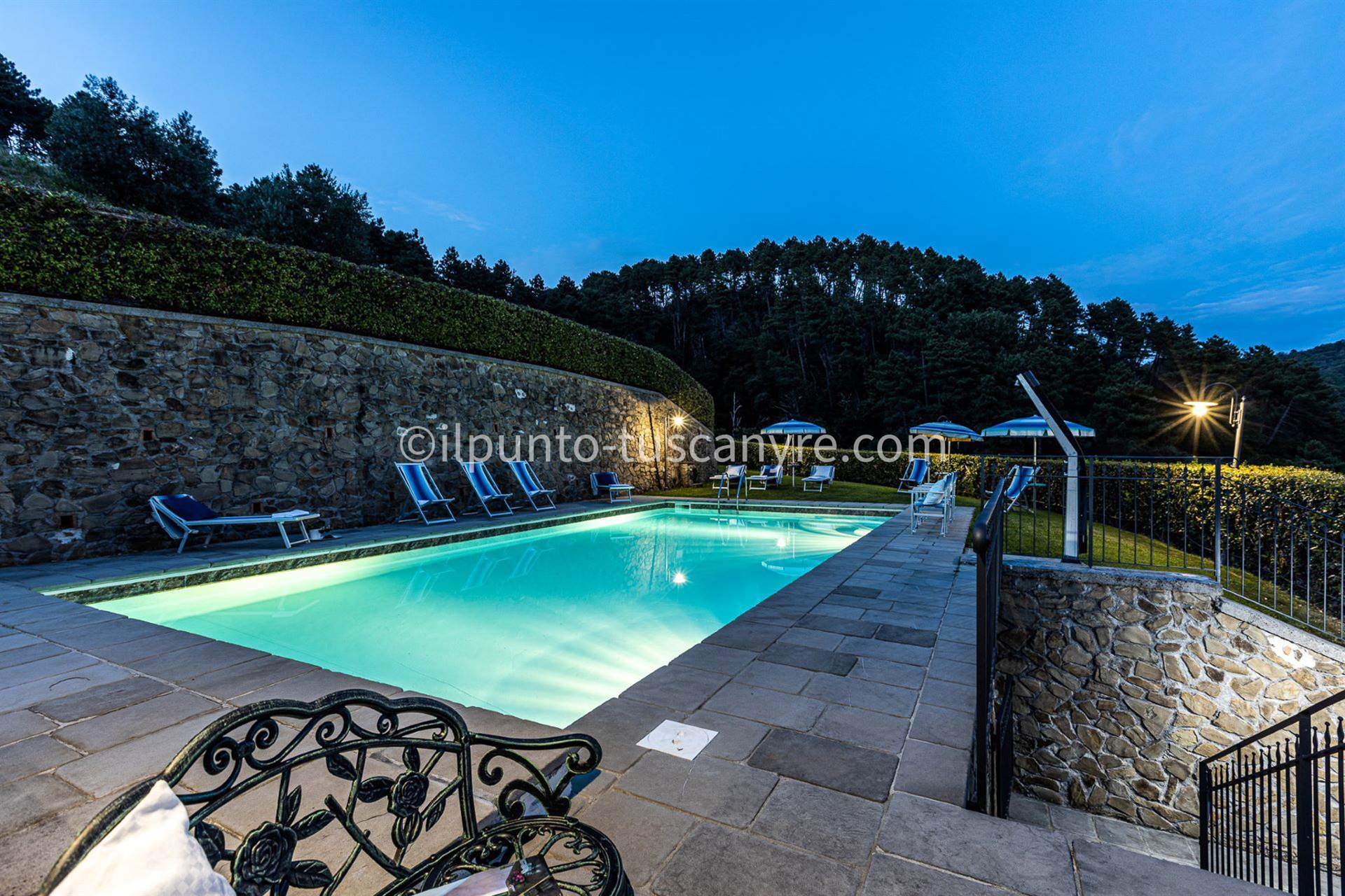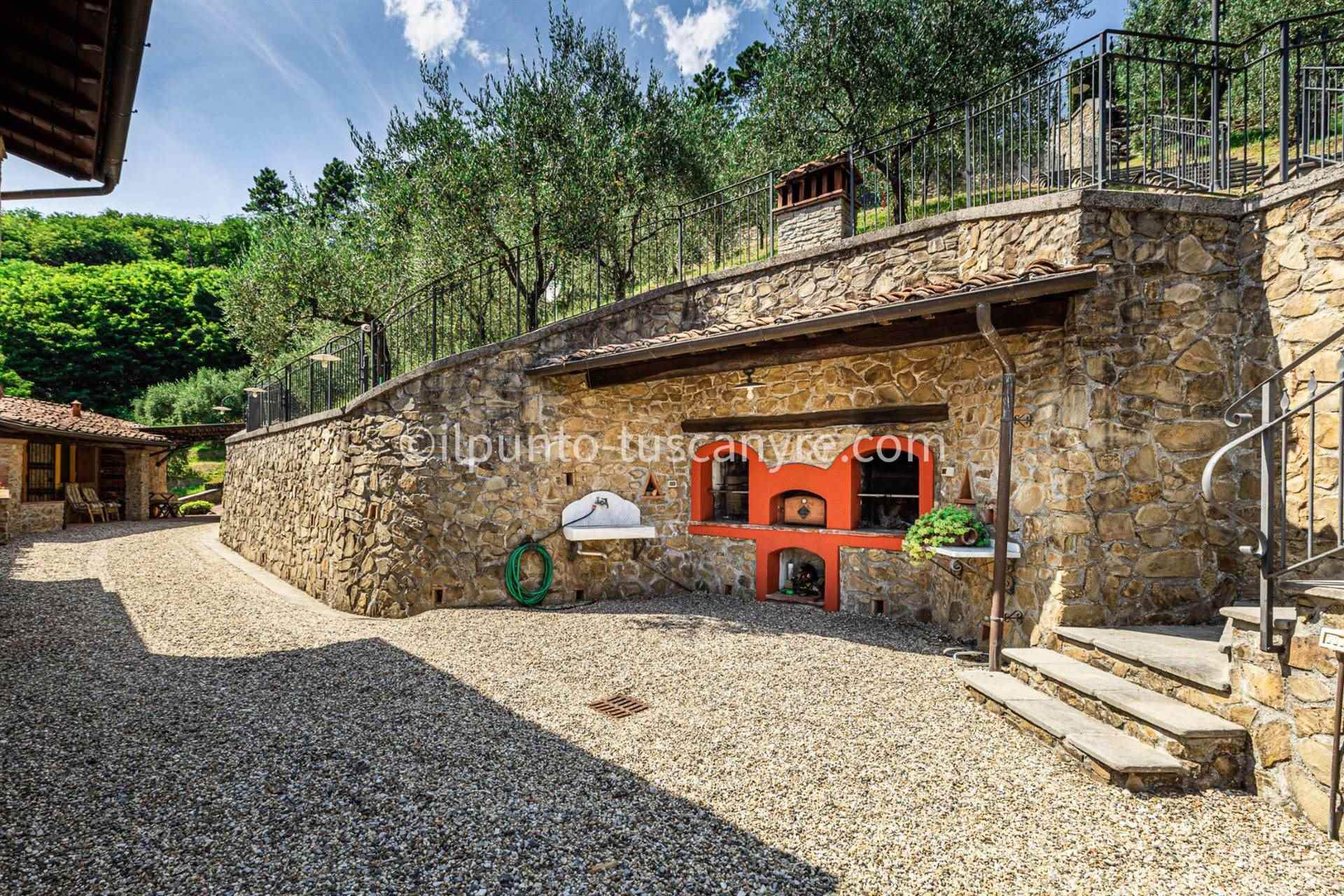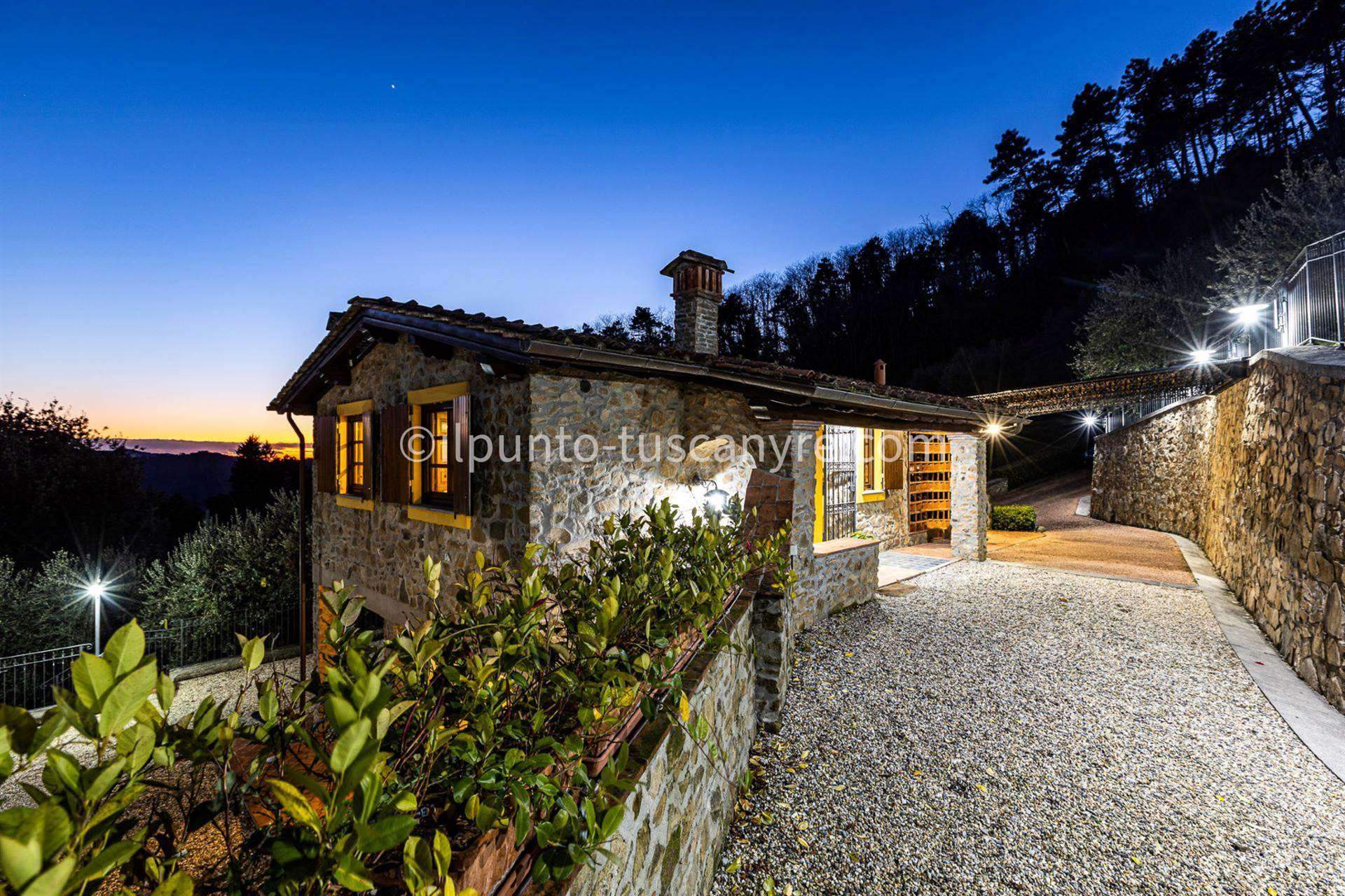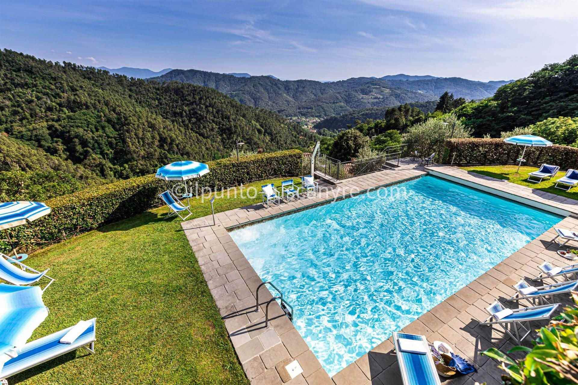 PESCAGLIA – [321] – AL COLLE, Enchanting village with swimming pool, for sale on the hills between Lucca and Camaiore, located in a breathtaking location from which you can enjoy a wonderful view of the Lucchese plain. The property consists of two buildings for a total of sqm. 467 and with swimming pool in the well-kept park with olive grove, all about 2.5 hectares. Access to the property is through a private paved road that runs along part of the olive grove property and arrives at the large parking area. The two buildings located on top of a beautiful hill are currently divided into four apartments, while on the left, in a slightly lower terrace, there is a large garage for 2 cars. The buildings, originally from 1800, were totally renovated in 2000, trying to maintain the typical Tuscan style, in fact they have stone structure, terracotta floors, ceilings with wooden beams, bricks and original fixtures. Each unit has its own private outdoor area with barbecue and divided by furniture in dining areas and relaxation areas and the property is surrounded by a well-kept garden. The houses are composed of a minimum of two rooms to three bedrooms, bathroom, living area and kitchen. All of this is accompanied by a beautiful wood-burning oven, laundry area, cellar, storage rooms and large garage. Externally a pergola for dining outdoors with barbecue and not far from the buildings, on a terrace in an elevated position, is located the area dedicated to the pool. The pool is unique, with views over the valley and protected by the surrounding hills, where the ancient Pievi stand out giving unique views to anyone who relaxes in the surrounding solarium. The property for sale in Tuscany enjoys a unique charm and a privileged position; therefore, it is an excellent investment both for those who want a typically Tuscan holyday home, surrounded by nature but not too isolated, and for anyone who wishes to make it their main dwelling with the possibility of using a part of it as an accommodation business. DISTANZE: -Lucca km 13 -Versilia coast km 20 -Pisa Airport km 40 -Firenze Airport km 83 PLEASE NOTE: For privacy reasons, geolocation indicates the area, but not the exact address.