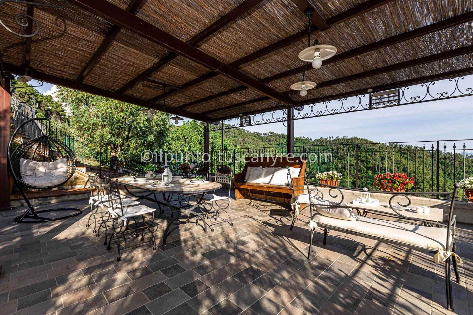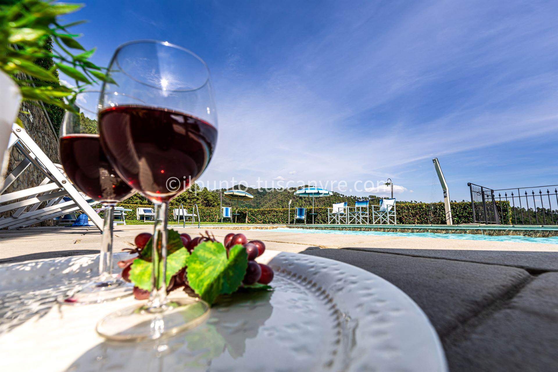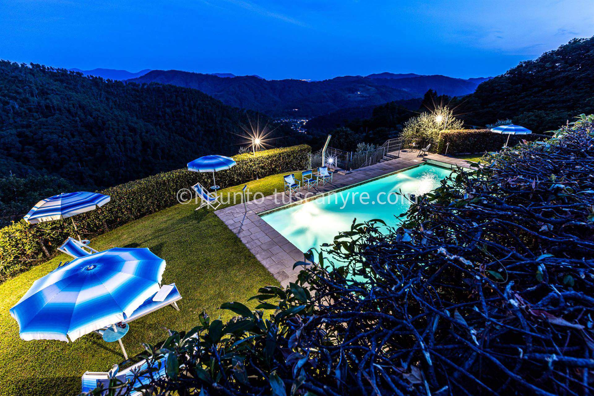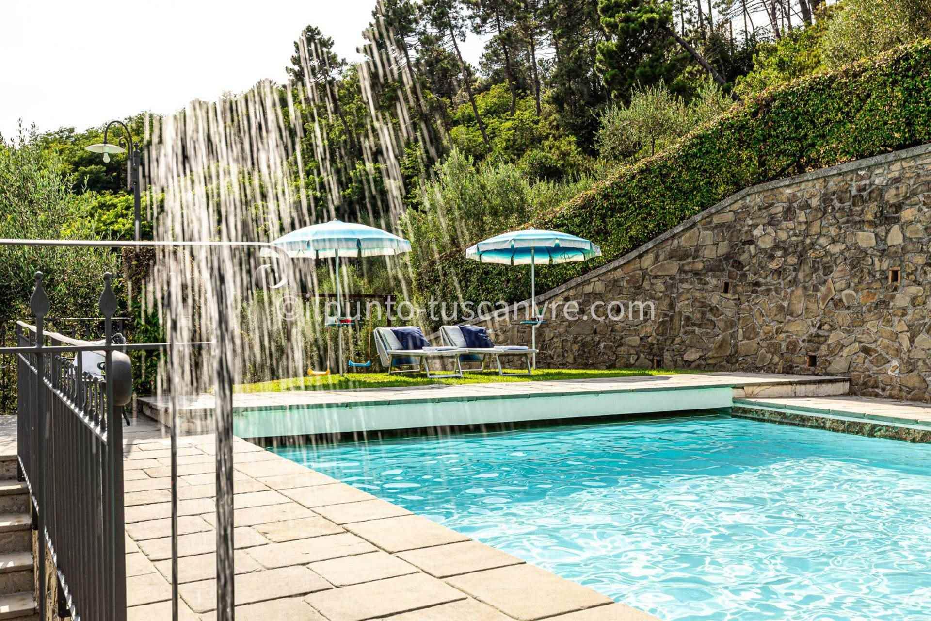 PESCAGLIA – [321] – AL COLLE, Enchanting village with swimming pool, for sale on the hills between Lucca and Camaiore, located in a breathtaking location from which you can enjoy a wonderful view of the Lucchese plain. The property consists of two buildings for a total of sqm. 467 and with swimming pool in the well-kept park with olive grove, all about 2.5 hectares. Access to the property is through a private paved road that runs along part of the olive grove property and arrives at the large parking area. The two buildings located on top of a beautiful hill are currently divided into four apartments, while on the left, in a slightly lower terrace, there is a large garage for 2 cars. The buildings, originally from 1800, were totally renovated in 2000, trying to maintain the typical Tuscan style, in fact they have stone structure, terracotta floors, ceilings with wooden beams, bricks and original fixtures. Each unit has its own private outdoor area with barbecue and divided by furniture in dining areas and relaxation areas and the property is surrounded by a well-kept garden. The houses are composed of a minimum of two rooms to three bedrooms, bathroom, living area and kitchen. All of this is accompanied by a beautiful wood-burning oven, laundry area, cellar, storage rooms and large garage. Externally a pergola for dining outdoors with barbecue and not far from the buildings, on a terrace in an elevated position, is located the area dedicated to the pool. The pool is unique, with views over the valley and protected by the surrounding hills, where the ancient Pievi stand out giving unique views to anyone who relaxes in the surrounding solarium. The property for sale in Tuscany enjoys a unique charm and a privileged position; therefore, it is an excellent investment both for those who want a typically Tuscan holyday home, surrounded by nature but not too isolated, and for anyone who wishes to make it their main dwelling with the possibility of using a part of it as an accommodation business. DISTANZE: -Lucca km 13 -Versilia coast km 20 -Pisa Airport km 40 -Firenze Airport km 83 PLEASE NOTE: For privacy reasons, geolocation indicates the area, but not the exact address.