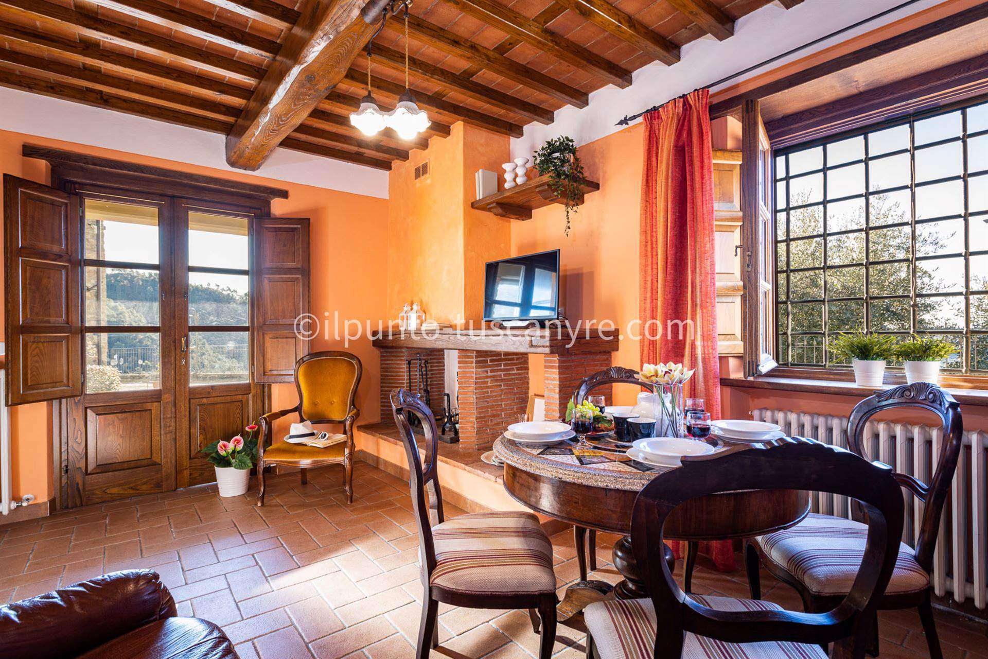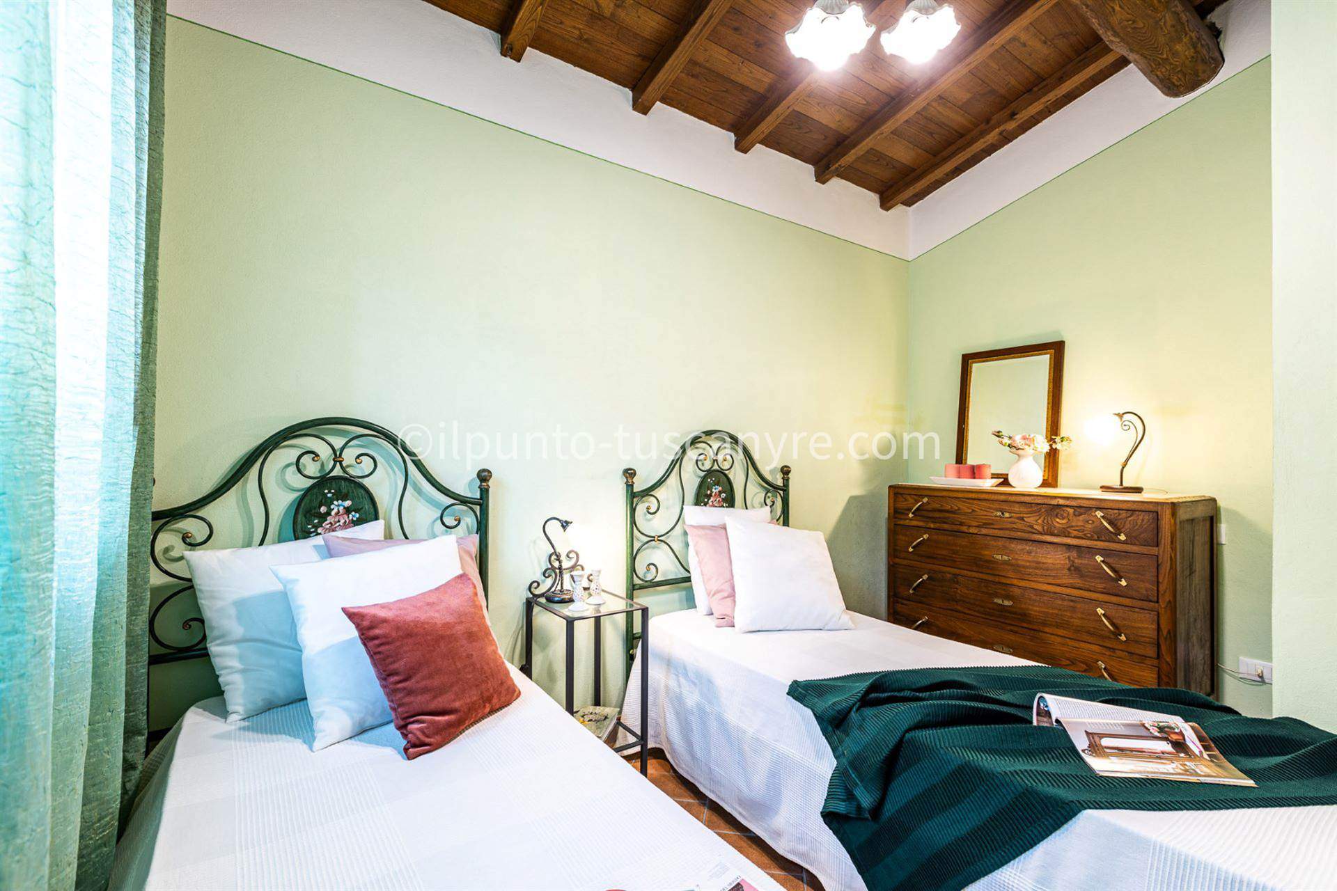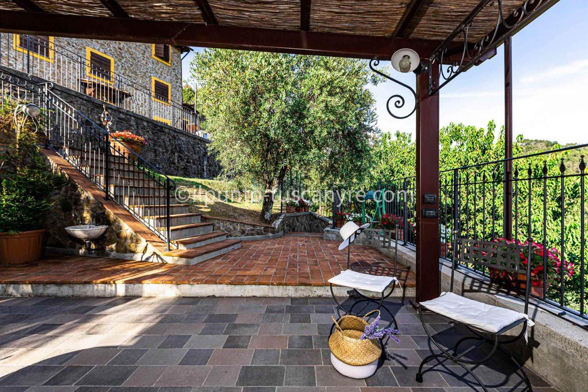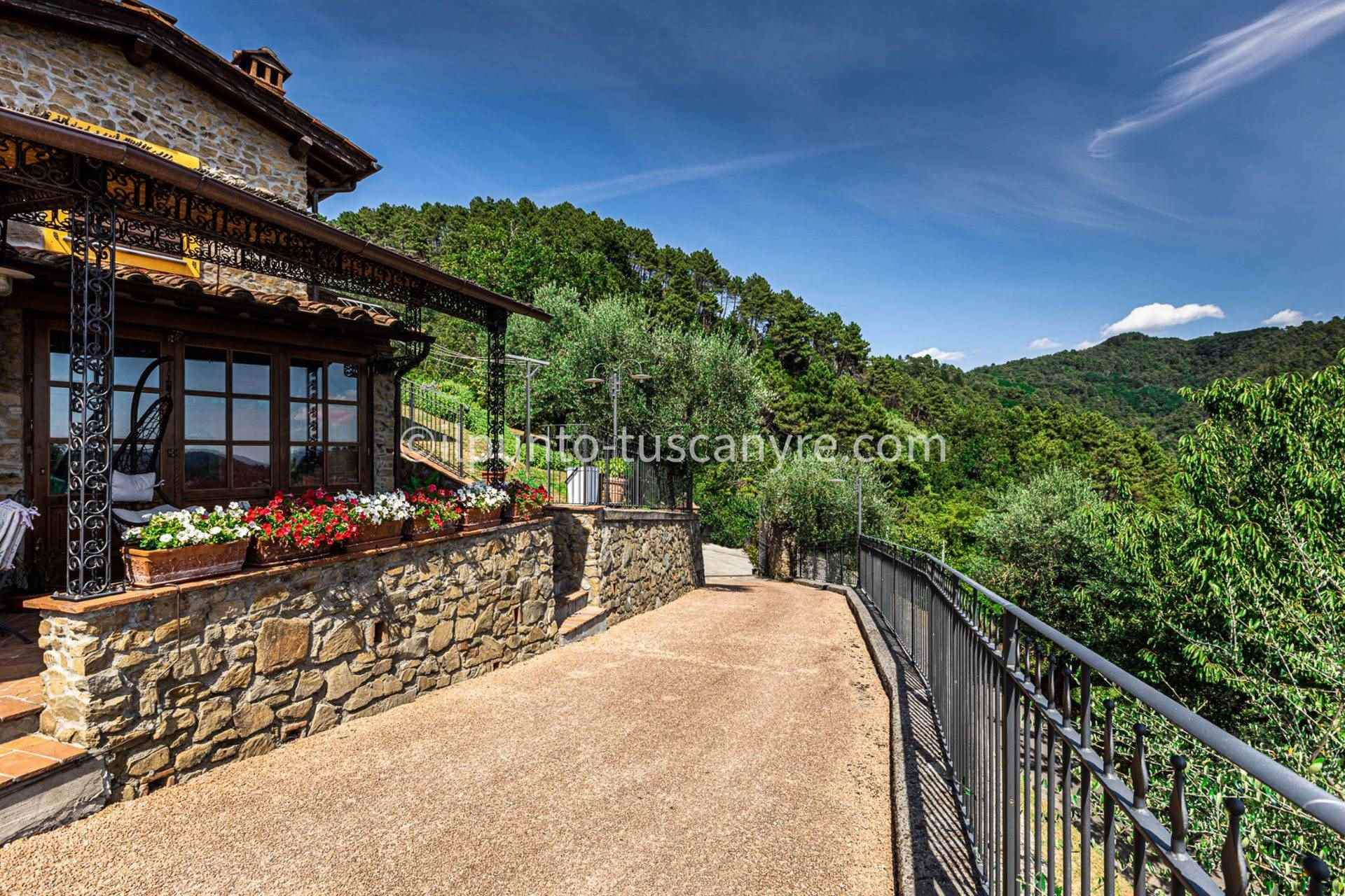 PESCAGLIA – [321] – AL COLLE, Enchanting village with swimming pool, for sale on the hills between Lucca and Camaiore, located in a breathtaking location from which you can enjoy a wonderful view of the Lucchese plain. The property consists of two buildings for a total of sqm. 467 and with swimming pool in the well-kept park with olive grove, all about 2.5 hectares. Access to the property is through a private paved road that runs along part of the olive grove property and arrives at the large parking area. The two buildings located on top of a beautiful hill are currently divided into four apartments, while on the left, in a slightly lower terrace, there is a large garage for 2 cars. The buildings, originally from 1800, were totally renovated in 2000, trying to maintain the typical Tuscan style, in fact they have stone structure, terracotta floors, ceilings with wooden beams, bricks and original fixtures. Each unit has its own private outdoor area with barbecue and divided by furniture in dining areas and relaxation areas and the property is surrounded by a well-kept garden. The houses are composed of a minimum of two rooms to three bedrooms, bathroom, living area and kitchen. All of this is accompanied by a beautiful wood-burning oven, laundry area, cellar, storage rooms and large garage. Externally a pergola for dining outdoors with barbecue and not far from the buildings, on a terrace in an elevated position, is located the area dedicated to the pool. The pool is unique, with views over the valley and protected by the surrounding hills, where the ancient Pievi stand out giving unique views to anyone who relaxes in the surrounding solarium. The property for sale in Tuscany enjoys a unique charm and a privileged position; therefore, it is an excellent investment both for those who want a typically Tuscan holyday home, surrounded by nature but not too isolated, and for anyone who wishes to make it their main dwelling with the possibility of using a part of it as an accommodation business. DISTANZE: -Lucca km 13 -Versilia coast km 20 -Pisa Airport km 40 -Firenze Airport km 83 PLEASE NOTE: For privacy reasons, geolocation indicates the area, but not the exact address.