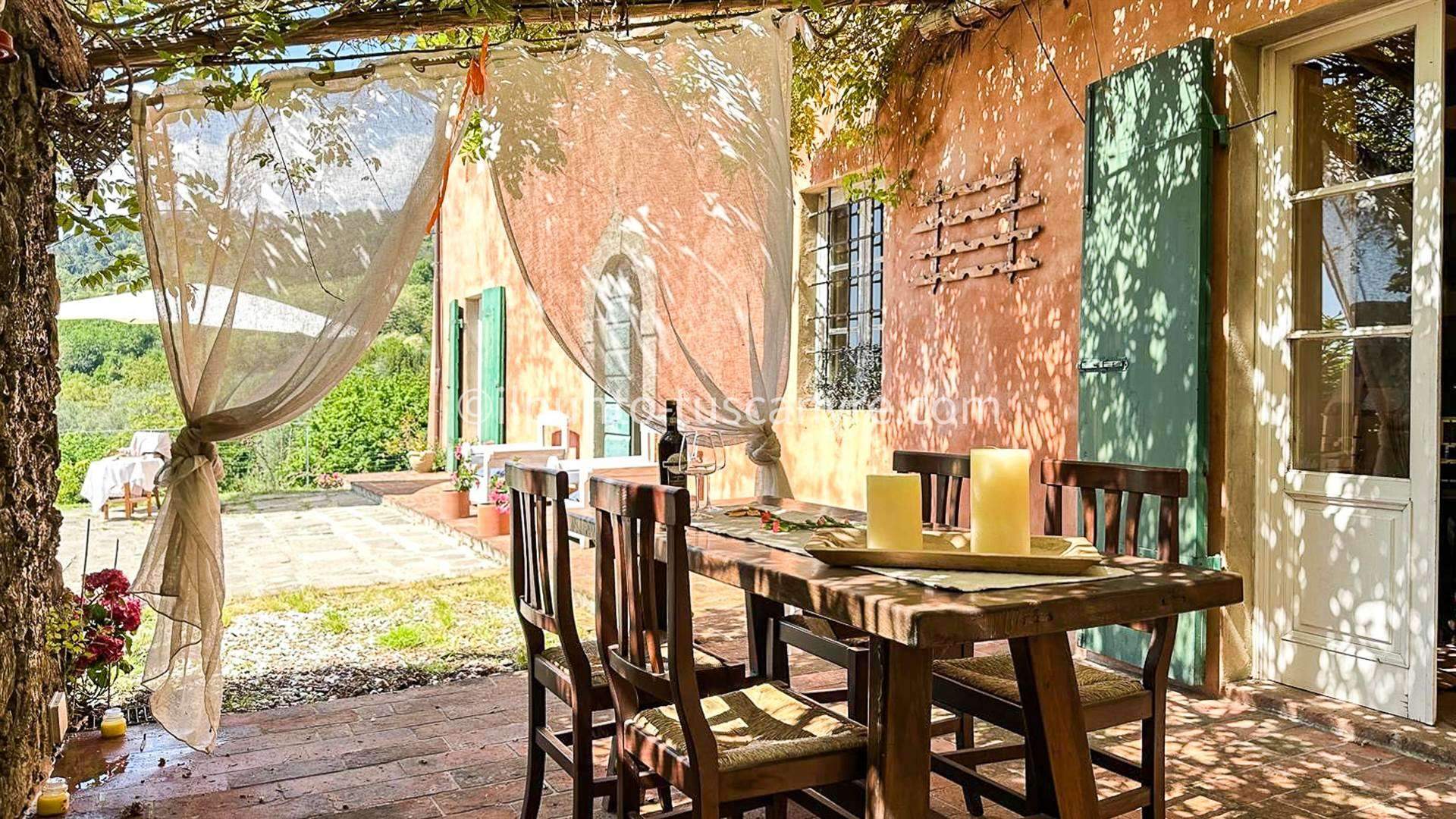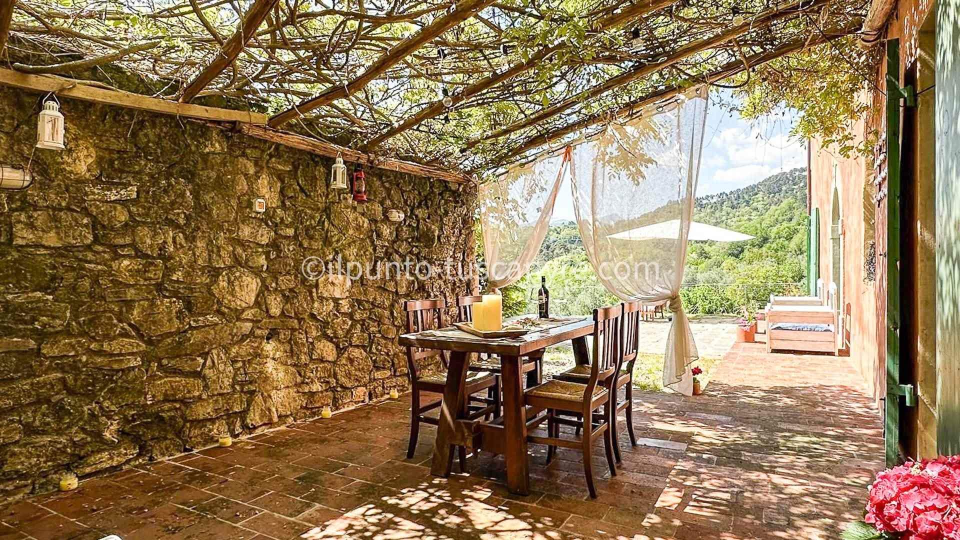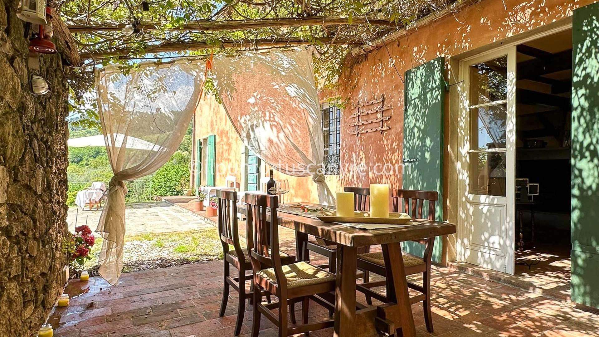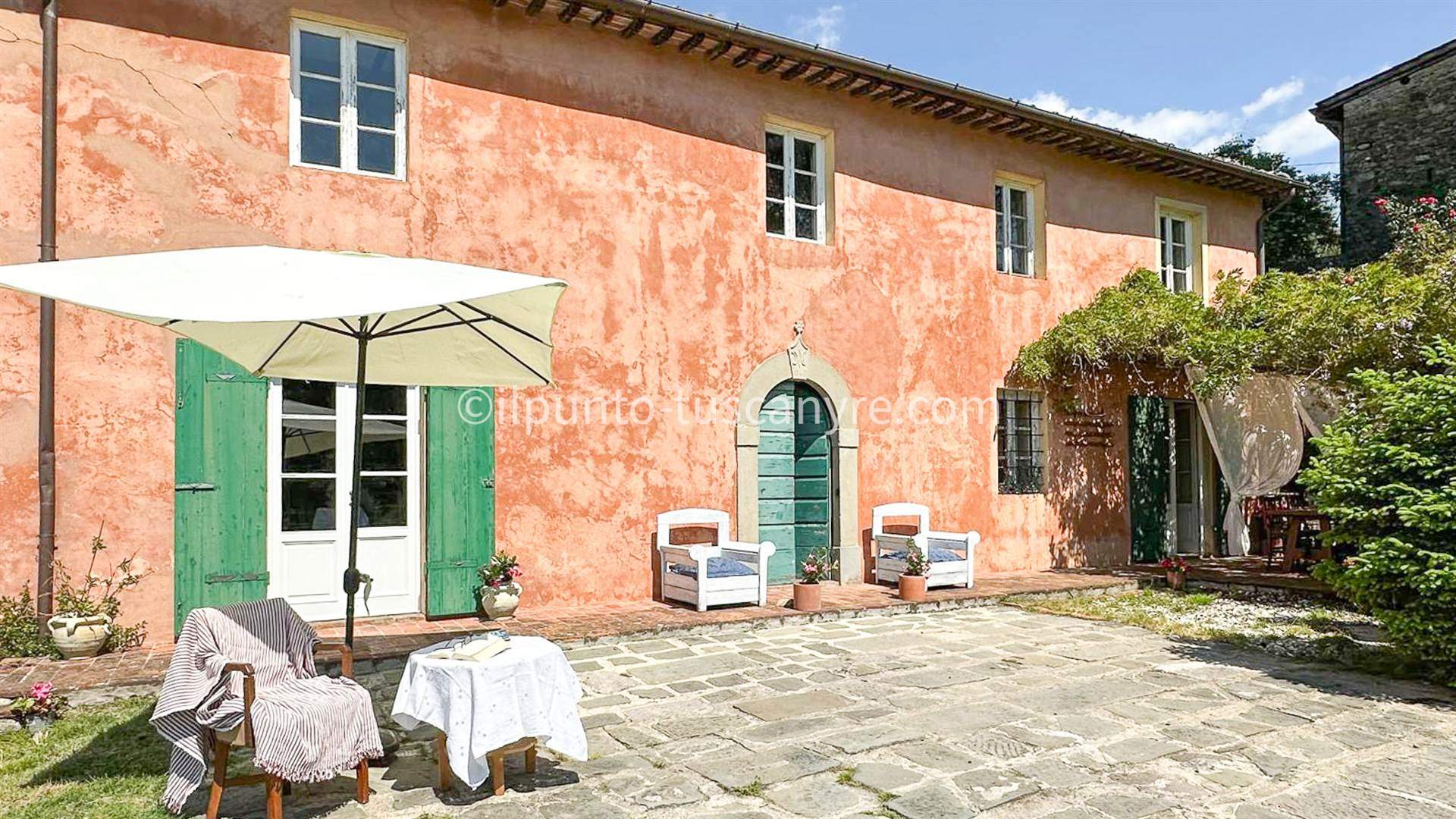 TUSCANY - LUCCA - [V0333] - On the beautiful hills between Lucca and Camaiore, very famous for the high quality of production of oil and wine, a few minutes from the city and the sea, immersed among olive trees and fruit trees, We offer for sale this wonderful property consisting of main farmhouse, barn and garden. The property is located at about 270 m (asl) in a quiet and easily accessible area, with excellent exposure and offers an amazing panoramic view of the surrounding hills. The property includes 2 stone houses, one completely renovated in typical Tuscan style, maintaining the original characteristics of construction with wooden beams and half-timbering, the other building completely to be restored, a large garden with pergola, parking outside and beautiful land including an olive grove, ready to be inhabited. The FIRST farmhouse of approx. 270 sqm consists of: GROUND FLOOR - Entry; - Living kitchen; - Dining room; - Living room with fireplace; - Bathroom; - Sala; FIRST FLOOR - 4 double rooms; - 2 Bathrooms; The SECOND house of approx. 140 sqm is on two levels and consists of 4 rooms, all completely to be restored. FINISHES and EQUIPMENT: The farmhouse has been restored in traditional Tuscan style with chestnut wood beams and terracotta tiles, terracotta floors, stone decorations and brick facades. Excellent internal and external finishing. LPG heating with boiler to be replaced. The property is accompanied by a large courtyard in front of the house with pergola and barbecue area in addition is equipped with approx 1000 sqm of land with olive trees in production, large outdoor space for parking. The sale excludes furniture that may be part of a separate negotiation. This magnificent property is ideal as a holiday home, B&B, farmhouse or main house.