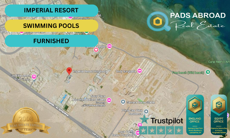 Fully Furnished Studio Apartment for Sale at Imperial Resort, Hurghada WAS– £35,000 REDUCED TO £28,000 FOR QUICK SALE. Offered by PadsAbroad Real Estate Escape to year-round sunshine with this beautifully designed 37 m² fully furnished studio apartment at the sought-after Imperial Resort in Hurghada, Egypt. Situated on an elevated floor with balcony views overlooking the pool and desert landscapes, this turn-key unit is ideal for couples, retirees, holidaymakers, or savvy investors seeking immediate rental income. This modern studio is thoughtfully equipped with: A fully fitted kitchen featuring marble countertops, 2-burner electric hob, under-counter fridge, integrated oven, and extractor hood. Air conditioning, flat-screen TV, and a sofa bed for space-efficient comfort. A spacious bathroom with high-end fittings. A bright, open-plan layout with floor-to-ceiling windows leading onto a private balcony. ✅ Maintenance Fees Paid Until 2028 Ideal for holiday rentals or long-term lets Comes fully furnished – move in or rent out immediately Full Payment: £30,000 – no hidden costs Resort Facilities at Imperial Resort Hurghada: Large outdoor swimming pool Sun loungers & umbrellas On-site café & snack bar 24/7 security & reception Landscaped courtyard & relaxation areas Wi-Fi available in common areas Secure gated community Prime Location: 20 minutes to Hurghada International Airport 25 minutes to Hurghada Marina & vibrant Sheraton Street 10 minutes to El Gouna Close to supermarkets, pharmacies, banks & restaurants Red Sea beaches just a short walk away Whether you're dreaming of a winter escape, looking for a smart buy-to-let, or planning for retirement in the sun, this studio at Imperial Resort offers incredible value, low overheads, and solid investment potential in one of Egypt’s fastest-growing coastal destinations. Contact PadsAbroad Real Estate today On 00447429368398 or 00201001030661 Arrange a viewing or secure your dream apartment by the Red Sea today.